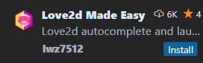 love2d는 vscode에서 여러 가지 다양한 익스텐션을 제공한다. 프레임워크인 만큼 자동으로 컴파일해서 테스트를 할 수 있는 실행기부터 자잘한 스니핏 등 love2d개발에 큰 도움을 주는 익스텐션을 제공해 준다. 이들 중 필자가 설치할 익스텐션은 아래 3개다.