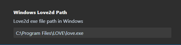 각 익스텐션은 설치한 이후 크게 건드릴 설정은 없는데, 만약 Love2d를 압축파일의 형태로 설치했거나 설치 경로를 바꿨다면 Love2d Made Easy에서 설정을 살짝 건드려줘야 한다.